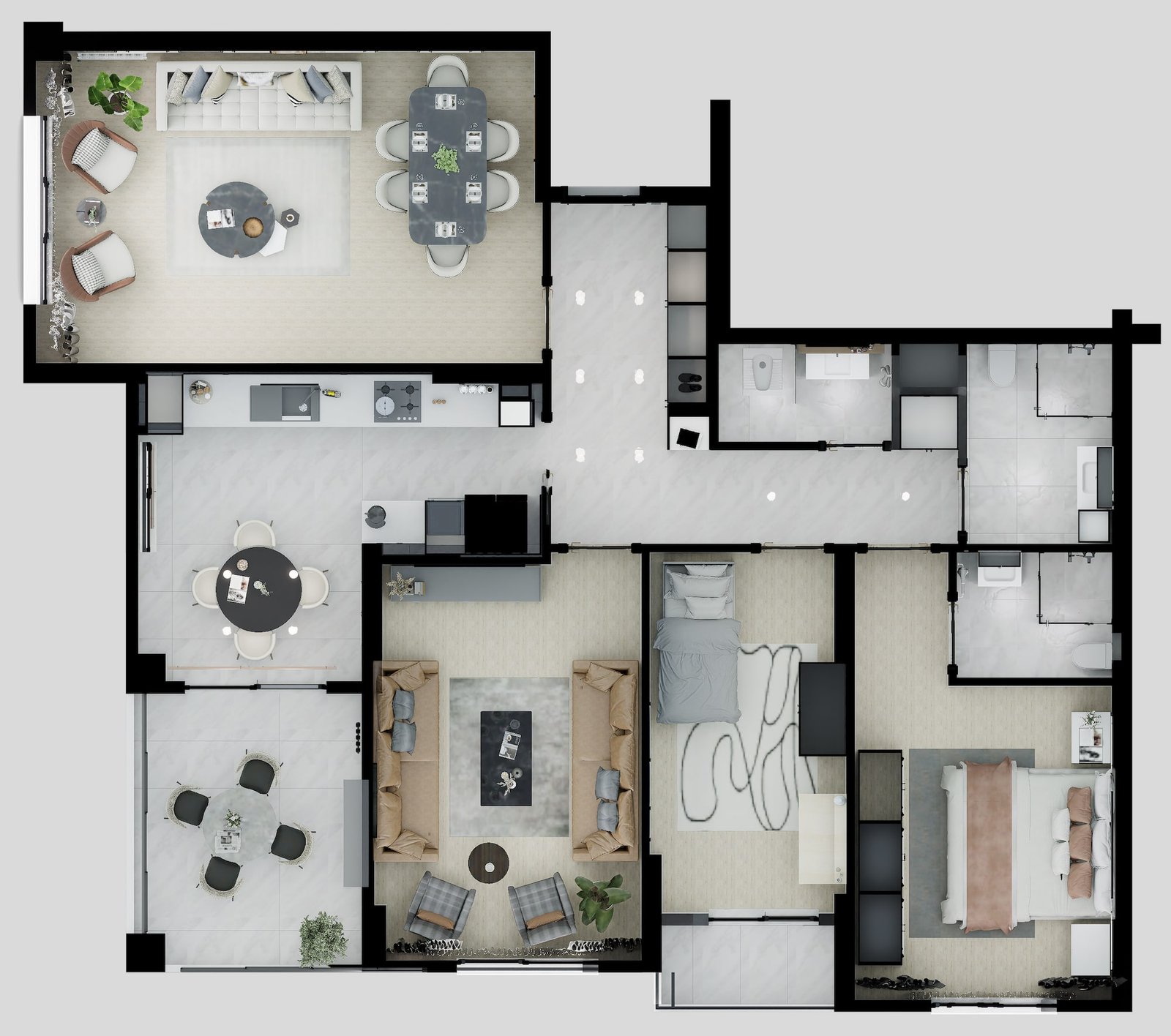 5 farklı mutfak ve seramik deseni, havuz, sinema odası, sauna ve hamam seçenekleri ile yaşam alanlarınızı tarzınıza uygun olarak konfigüre edin.