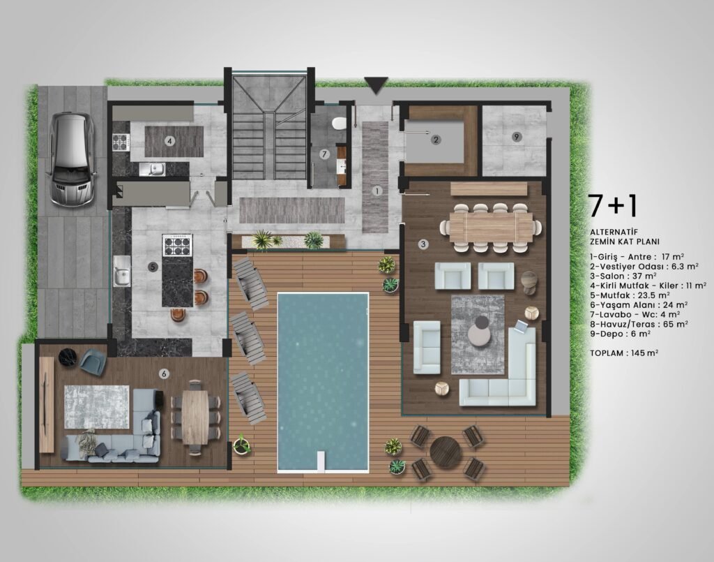 11 yapıda alternatif kat planları: 7+1, 7+1 havuzlu ve 8+1 seçenekleri ile sunuluyor. Her yapıya özgü bahçe ve kat planları müşteri deneyimleri baz alınarak sizler için tasarlandı.